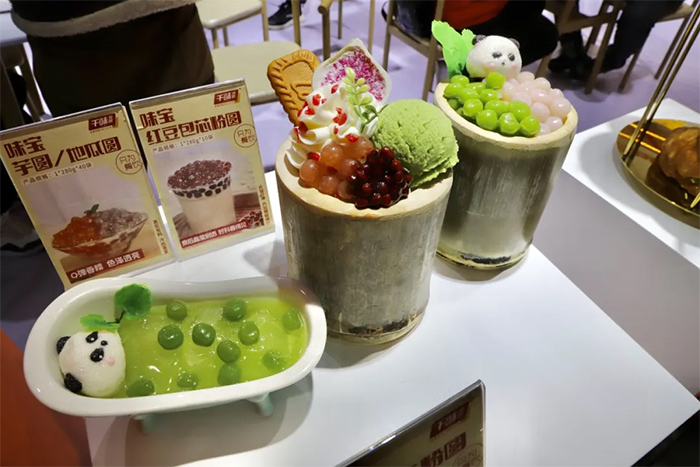 琳瑯滿目的產品展臺由千味央廚專業的廚務團隊打造,圍繞早餐、團餐、宴席、外賣四大場景,出品形式還原實際應用場景,帶給現場觀眾更加直觀的產品應用體驗。