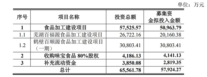 2024年1月16日,千味央廚披露2023年度向特定對象發行股票上市公告書,募集資金總額5.9億元,扣除發行費用后募集資金凈額5.79億元。從募集資金用途來看,食品加工建設項目擬投入占比較大,其次是收購味寶食品80%股權和補充流動資金。